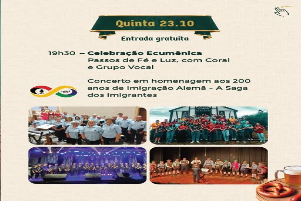 Logo depois, tem início o Concerto em Homenagem aos 200 anos de Imigração Alemã - A Saga dos Imigrantes, um show que está sendo apresentado em diferentes lugares do Estado.