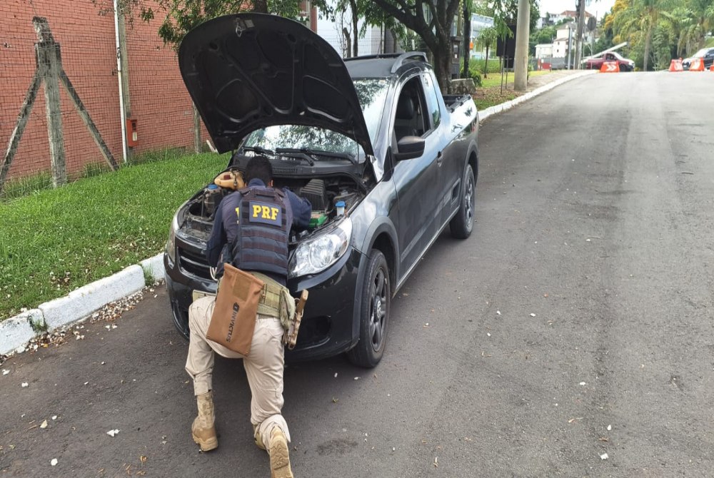 Na tarde desta quinta-feira (19), a Polícia Rodoviária Federal recuperou uma Saveiro com registro de roubo durante fiscalização na BR-470, em Bento Gonçalves. O automóvel possuía placas de Curitiba/PR.